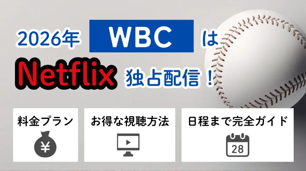この記事のPOINT! WBCの視聴方法がわかる WBCをNetflixで最安で見る方法がわかる WBCの日本の試合日程がわかる 2026年に開催される野球の世界一決定戦、ワールド・ベースボール・クラシック(WBC)。前回大会の興奮が記憶に新しく、開催を楽しみにしてい... -