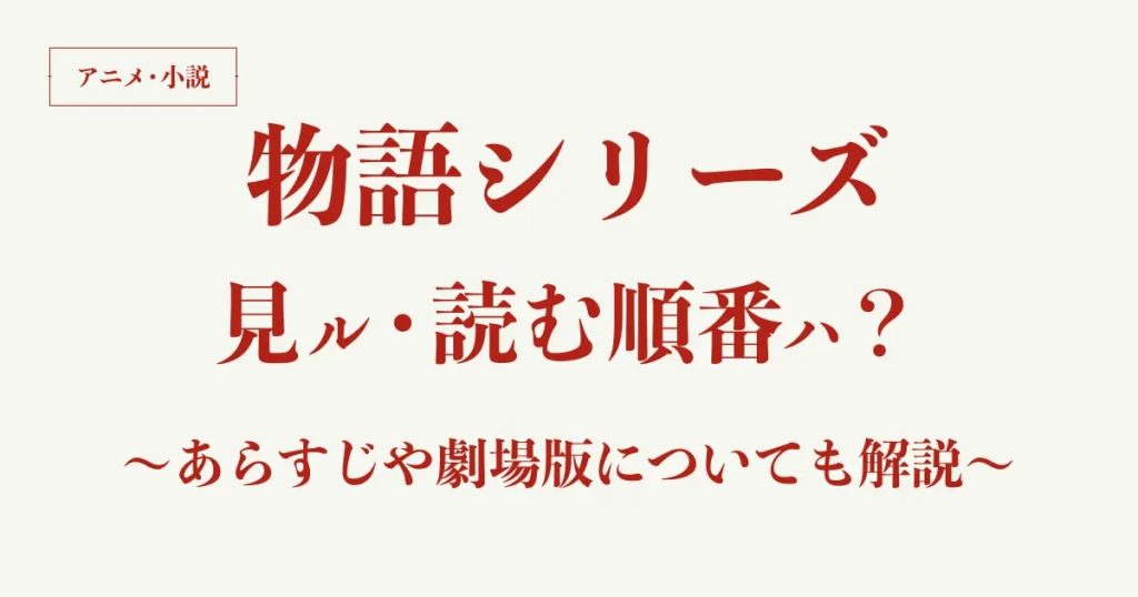 『物語シリーズ』のアニメや小説を見る・読む順番を解説しています。TVシリーズ、小説ともに人気が高く、2024年1月には最新の劇場版『傷物語-こよみヴァンプ-』の公開も控えています。物語シリーズに興味のある方はぜひ参考にしてください! -