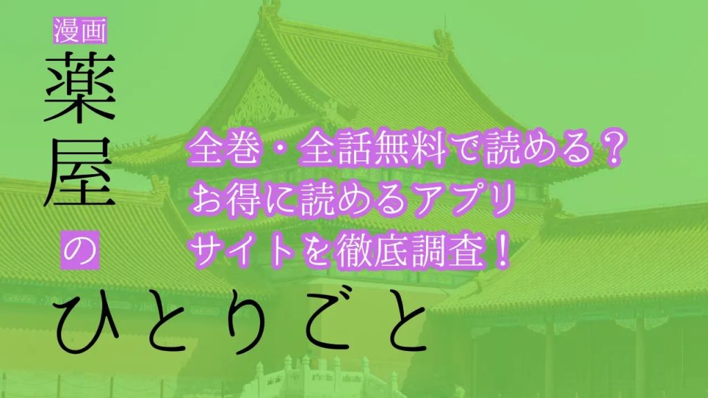漫画「薬屋のひとりごと」は全巻・全話無料で読める?お得に読めるアプリやサイトを徹底調査!