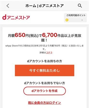 dアニメストアは、ブラウザから入会とアプリからの入会で、月額料金と無料期間が異なります