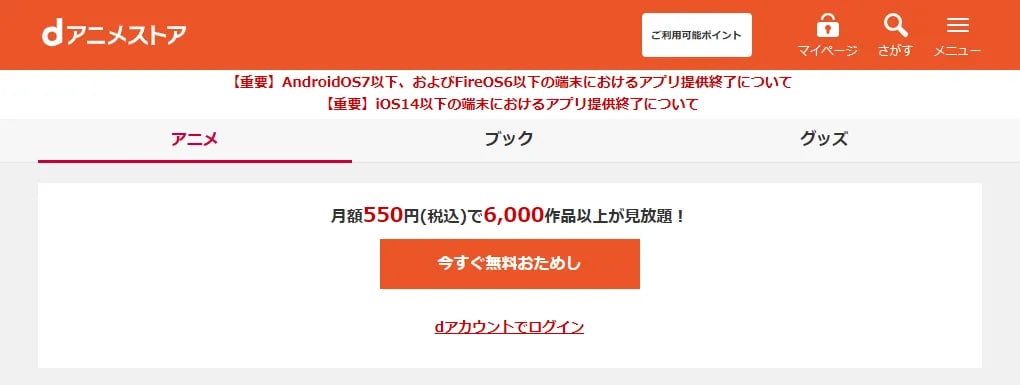 dアニメストアは、月額550円(税込)で6,000作品以上作品以上のアニメが見放題になるサービスです。