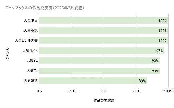 取り扱っているジャンル・作品数も豊富であり、DMMブックスだけでも十分に利用する価値が高いでしょう。