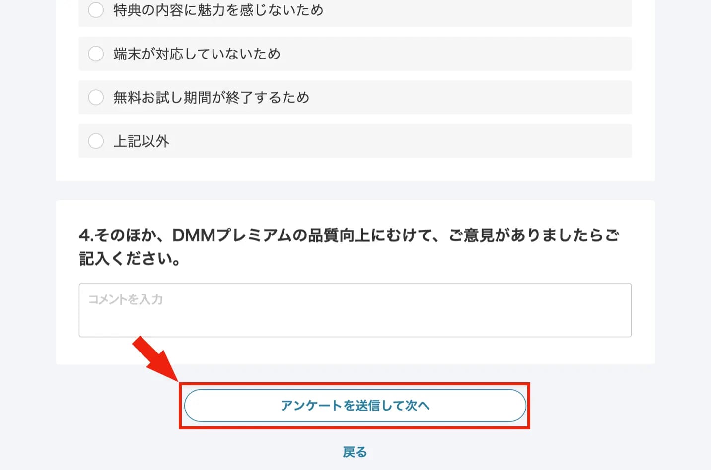 アンケートに回答をして、「アンケートを送信して次へ」をクリックする。