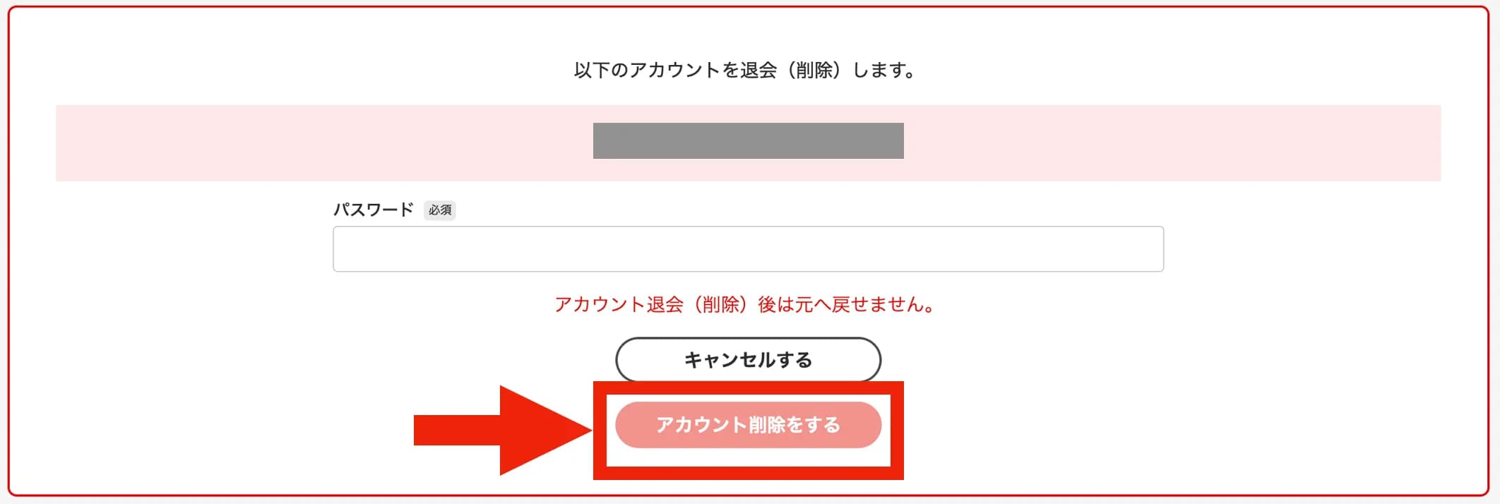 アンケート入力をし、「アカウントを削除する」をクリックする。