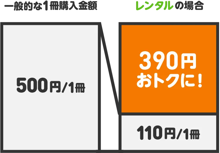 漫画の一般的な購入金額は、1冊あたり500円前後ですが、電子書籍レンタルサービスを利用すれば、100円/冊ほどで借りられるので非常にお得です。