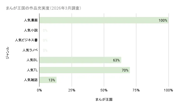 | 主なジャンル | 少年マンガ少女マンガ青年マンガ女性マンガハーレクイン恋愛・ラブコメヒューマンドラマホラー・怖い話SFファンタジー雑誌スポーツ・スポ根グルメ・料理アニメ・映画・ドラマ関連ギャグ・コメディサスペンス・ミステリヤンキー・極道・任侠裏社会・アングラ歴史四コマギャンブル青春・学園ビジネス・企業格闘・アクション動物・ペット子育て・夫婦・姑フルカラー医療エッセイ大人コミックTL(ティーンズラブ)BL(ボーイズラブ)レディースコミックガールズラブ |