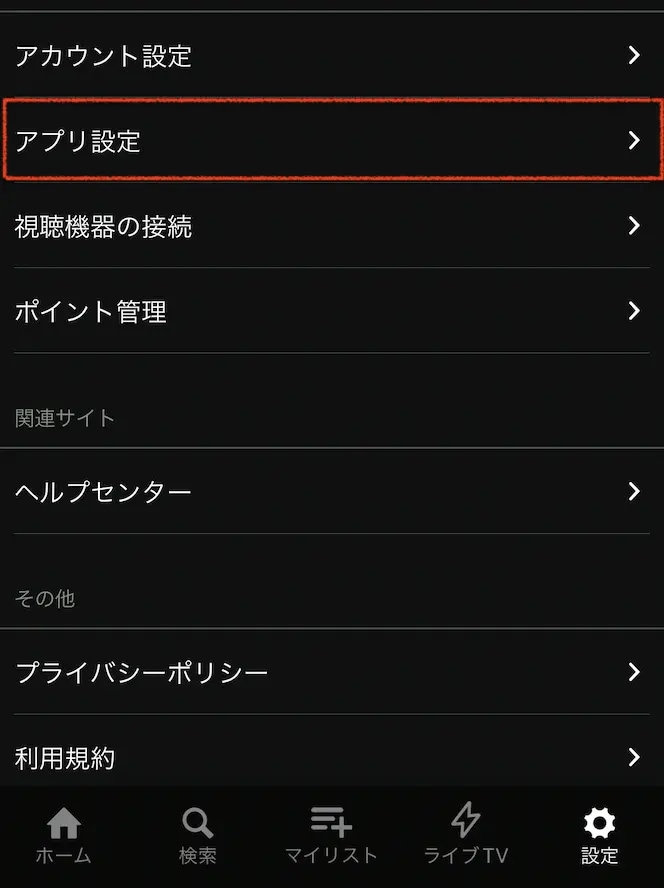 - メニューから「アカウント」を選択する
