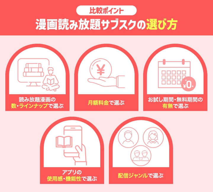 ここでは、目的別で漫画読み放題のおすすめサブスクを紹介していきます。