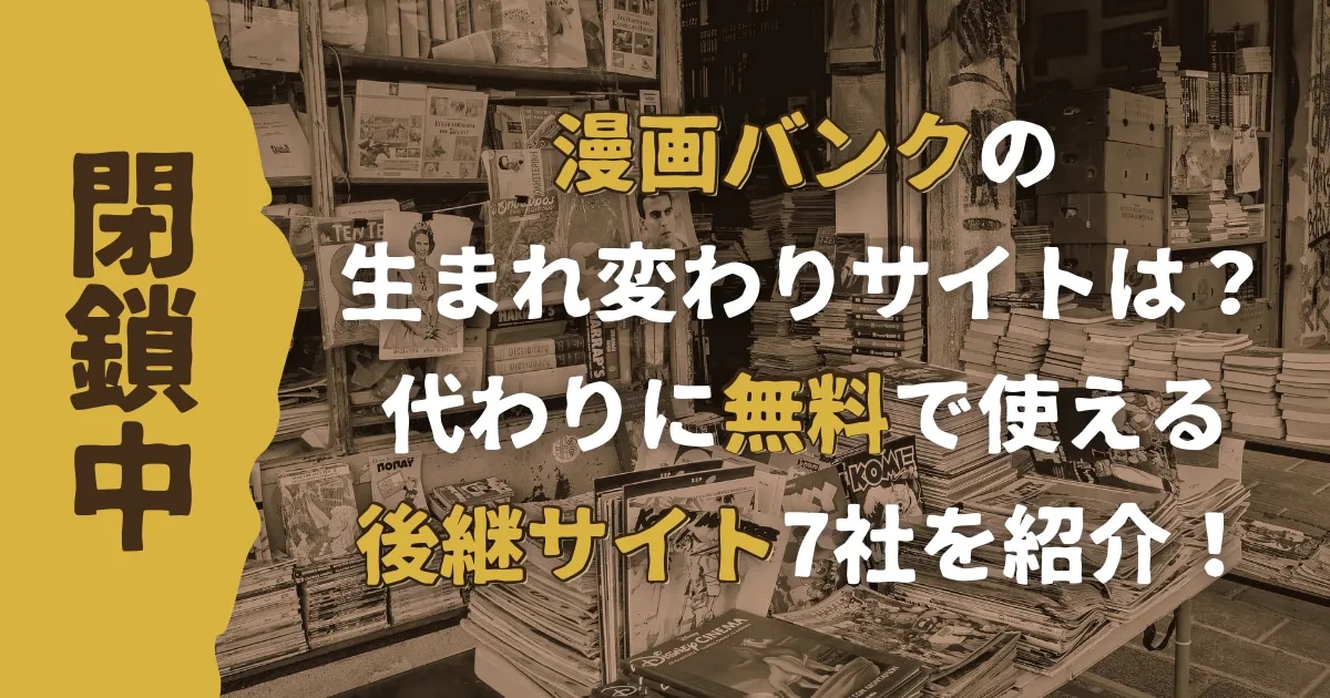 漫画バンクの後継サイトとしてComebeyやFbayなどがありますが、いずれも閉鎖しています。