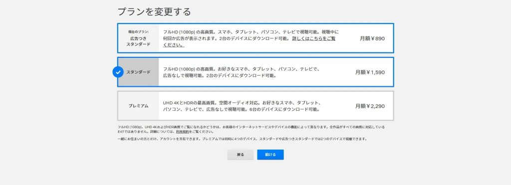 「スタンダードプラン」「プレミアムプラン」との違いについては、「Netflix広告つきプランと他のプランを徹底比較!」を参考にしてください。