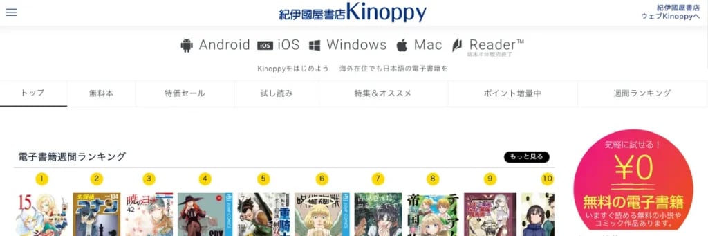 Reader Storeは、試し読みができる作品が約40万点以上あるSONYが運営している電子書籍サービスです。