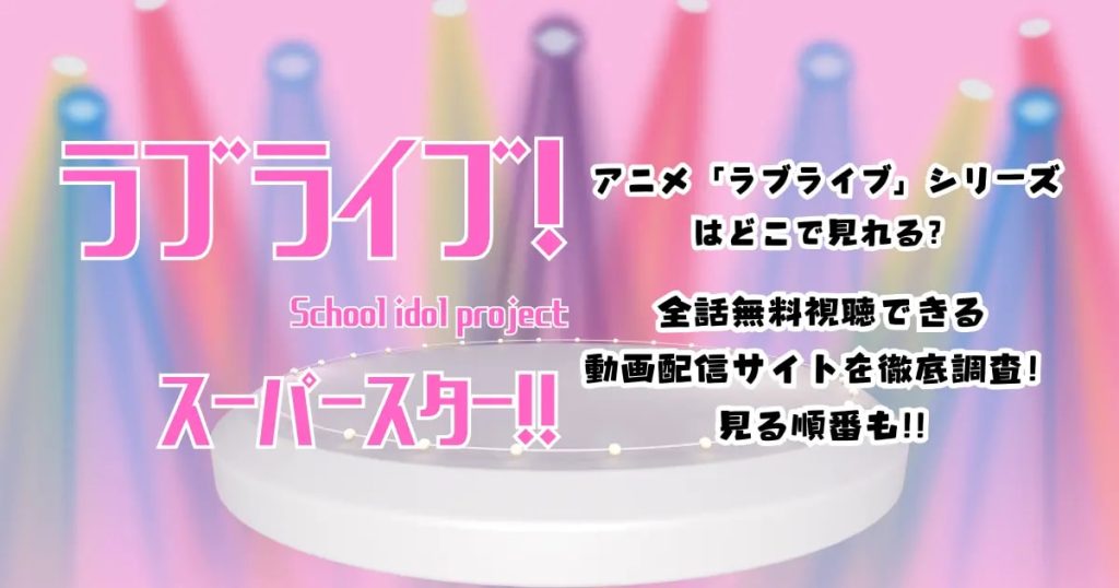 アニメ「ラブライブ」シリーズはどこで見れる?全話無料視聴できる動画配信サイトを徹底調査!見る順番も迷ったらココがおすすめ! アニメ「ラブライブ」を見るなら14日間無料のがおすすめです! アニメ「ラブライブ」シリーズは、複数の動画配信サービスで配信されています。また、無料期間を利用することで、無料で視聴することが可能です。 本記事では、アニ...
