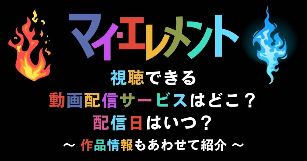 映画「マイ・エレメント」が無料で視聴できる動画配信サービス│配信日はいつ?作品情報もあわせて紹介!本記事では、マイ・エレメントが視聴できる動画配信サービスや見どころを紹介します。ほかにも、アニメが視聴可能な動画配信サービスを、6つ解説しています。アニメが好きな人は、ぜひ参考にしてください。