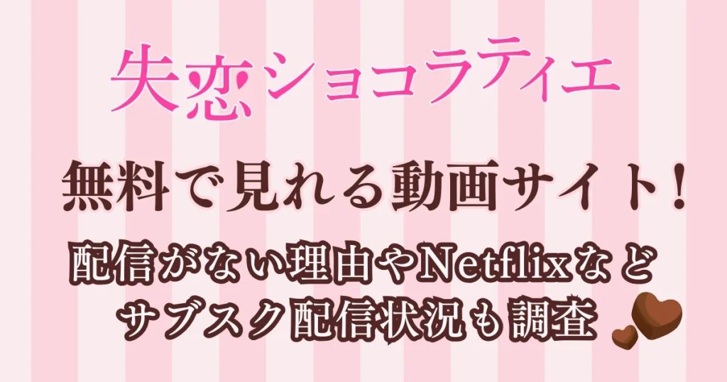 ドラマ「失恋ショコラティエ」を無料で見れる動画サイト!配信がない理由やNetflixなどサブスク配信状況も調査「失恋ショコラティエ」は松本潤や石原さとみらによる甘く切ない恋愛模様が話題を呼んだ人気ドラマです。本記事では、ドラマ「失恋ショコラティエ」を無料で見れる動画サイトについて、配信がない理由やサブスクの配信状況などを解説します。