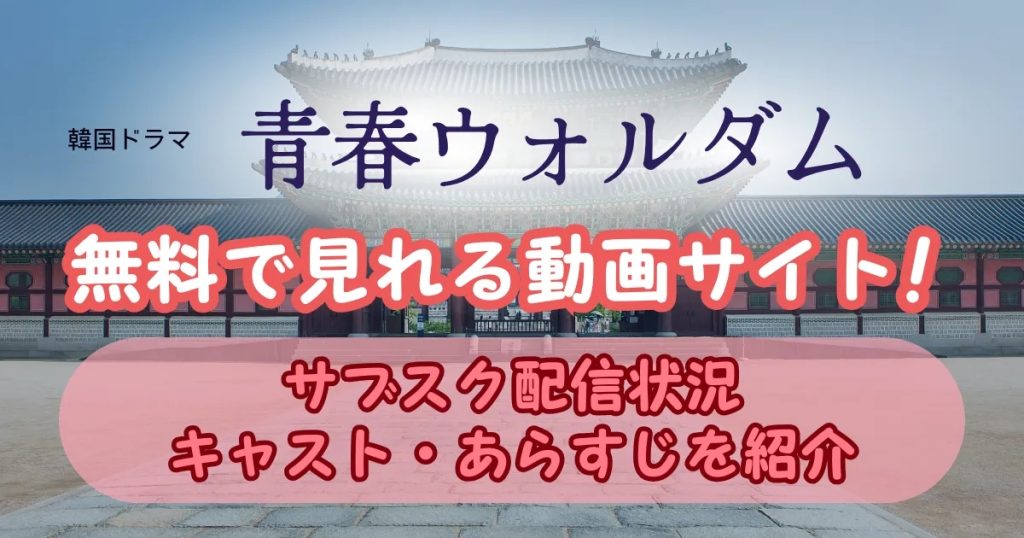 韓国ドラマ「青春ウォルダム」を無料で見れる動画サイトはどこ?NetflixやAmazoプライムなどを調査韓国ドラマ「青春ウォルダム」は、2024年に日本でも放送された人気の作品です。本記事では、青春ウォルダムが見れるおすすめの動画サイトを紹介しています。無料で見れる方法もあるので、ぜひ参考にしてください。
