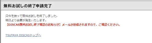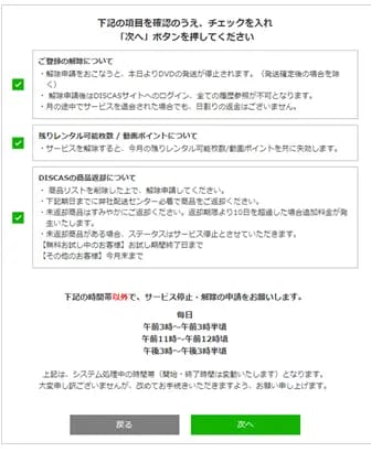 なお、TSUTAYA DISCASは、システムの更新作業を定期的に行っているため、下記の時間帯は解約処理が行われません。