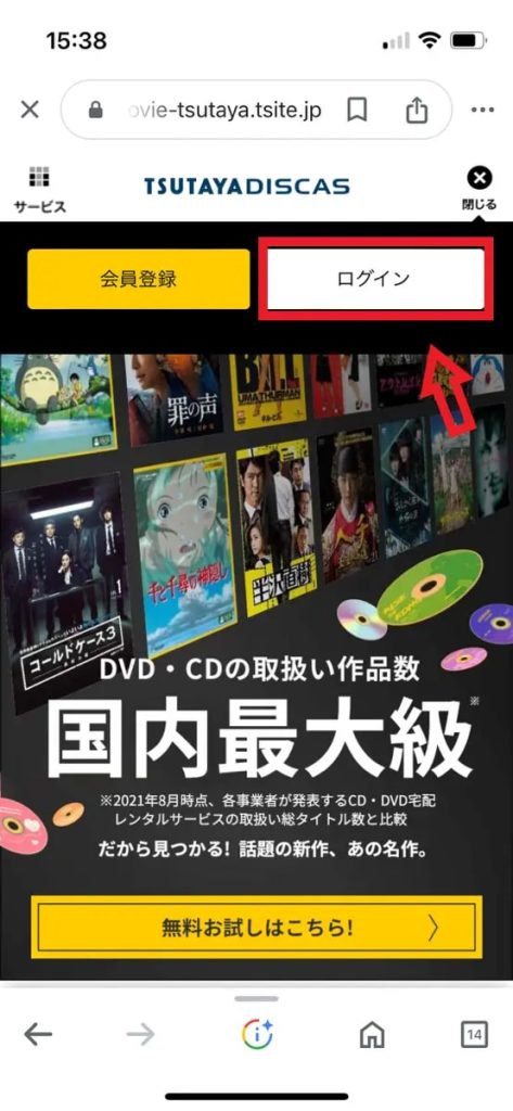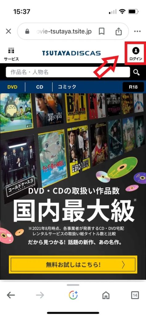 続いて、TSUTAYA DISCASのアカウントにログインする方法を紹介するので、さっそくログインしてサービスを利用してみてください。