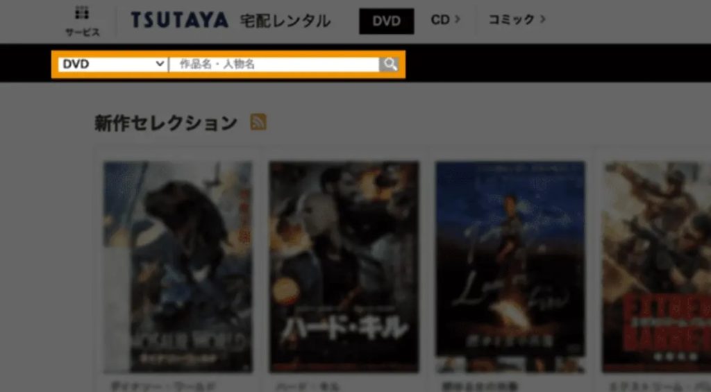 TSUTAYA DISCASは、作品を見つける検索方法が全部で3つあります。見たい作品がある方は、検索バーに直接作品名や主演人物名などを入力して、好きな作品を検索しましょう。