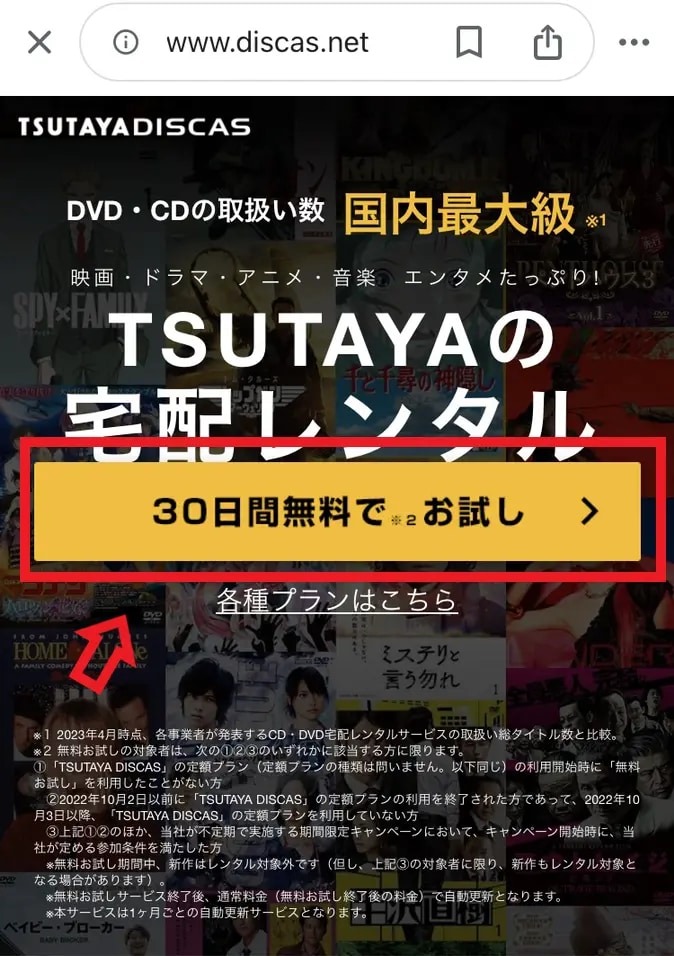 TSUTAYA DISCASの無料お試し期間を利用する方法を画像付きで解説します。