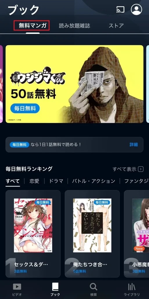 解約後は、「毎日無料」の漫画だけ楽しむという利用の仕方もあります。