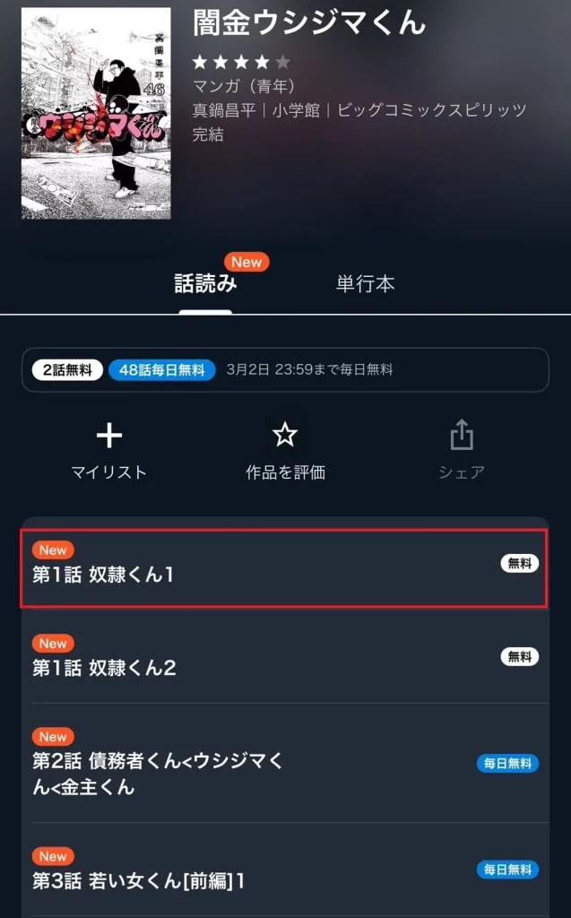 なお、無料で読める話数は、画面下部の表示で確認できます。