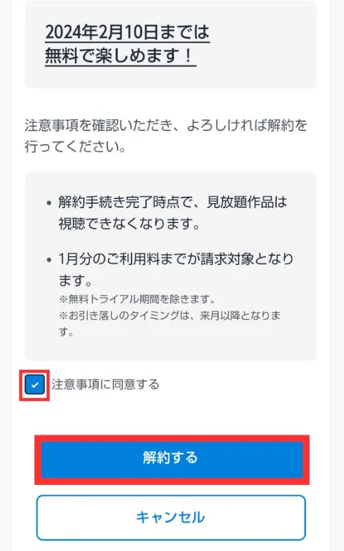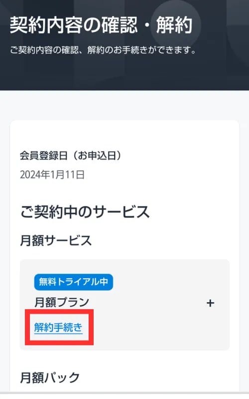 もし、無料トライアル終了後のサービス継続を希望しない場合は、無料トライアル終了日の24時間前までに解約手続きを済ませましょう。