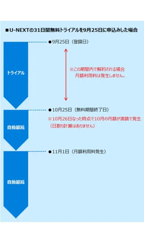 U-NEXTの無料トライアルを、月初に申し込むとお得に利用できます。